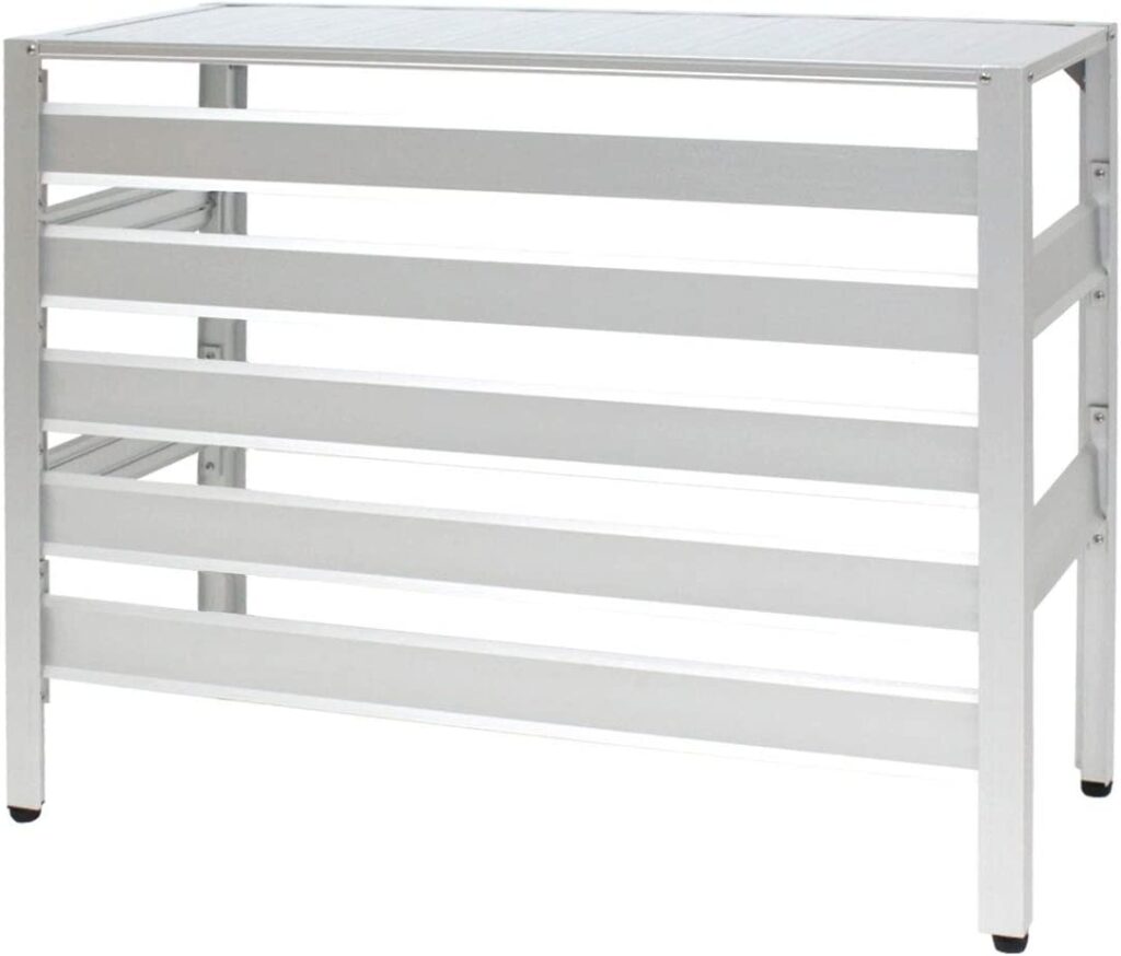 アルミ製の頑丈なつくりで、耐荷重は15kgもあるため、上に物を乗せて収納スペースとしても活用できます。