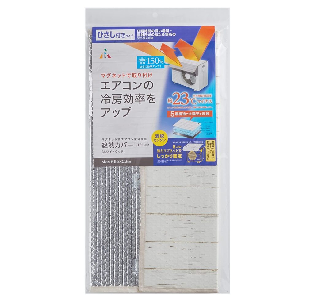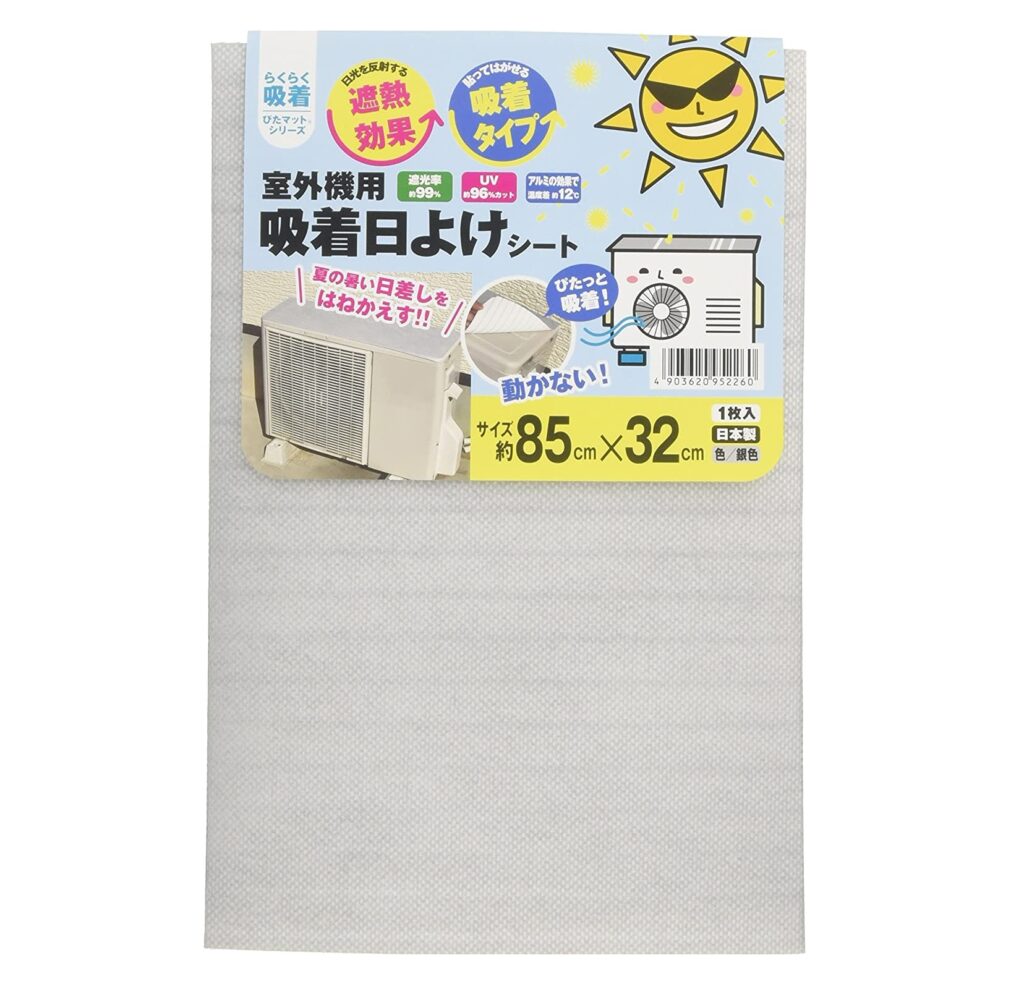 コメリ(ホームセンター)では、『エアコン室外機用 吸着日よけシート』という製品が販売されています。