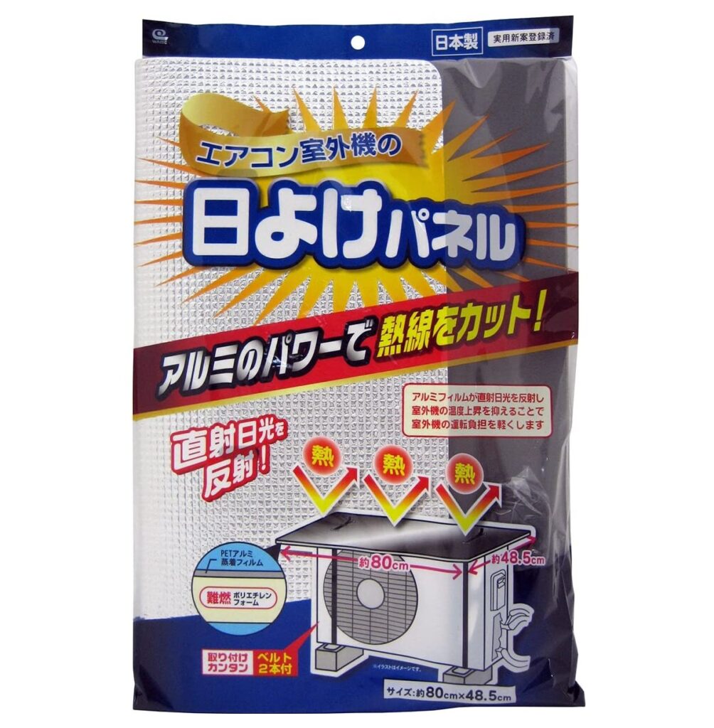 幅80×奥行48.5cmとサイズが大きめなので、室外機の上に装着することで影をつくり、天板だけでなく、側面があたたまるのも防ぐことができます。