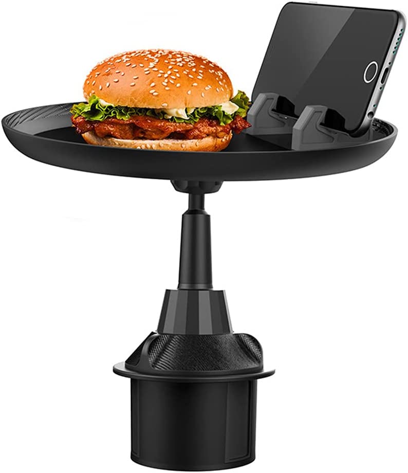 助手席に限らず、車内のドリンクホルダーに差し込んで使用できる、直径21cmの円形のテーブルです。