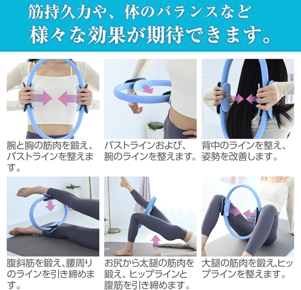 下半身・上半身のどちらも鍛えられるピラティスリングで、初心者でも比較的簡単に使えます。