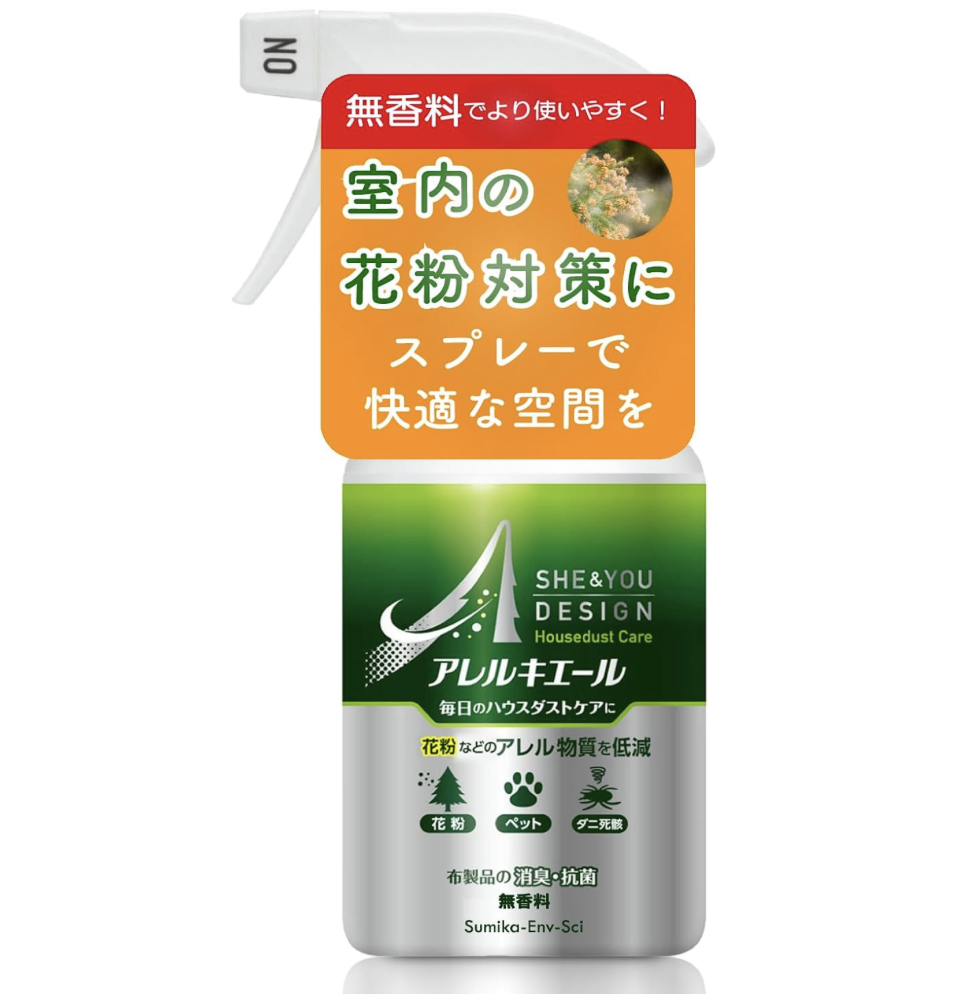 顔用のミストタイプのものや、衣類の花粉の付着を防げるもの、部屋の消臭もできるものなど、さまざまな製品が登場しています。