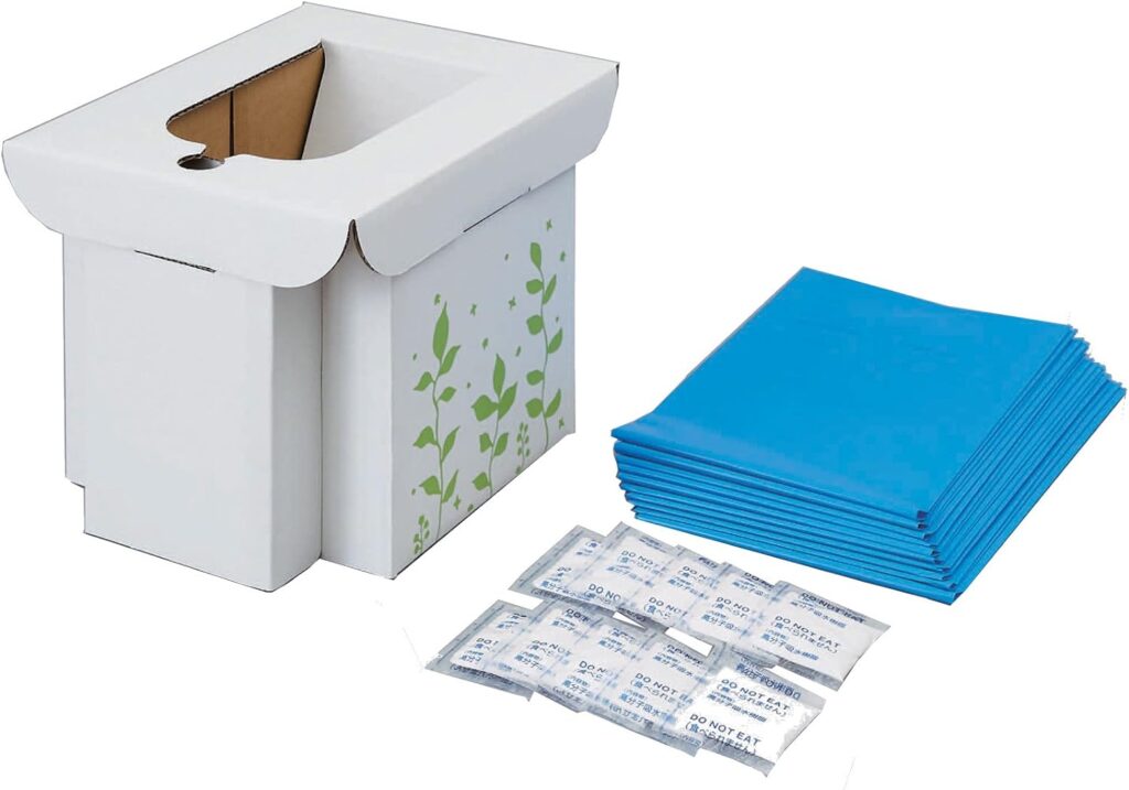 水を使用せずに排泄物を始末できる「簡易トイレ」。