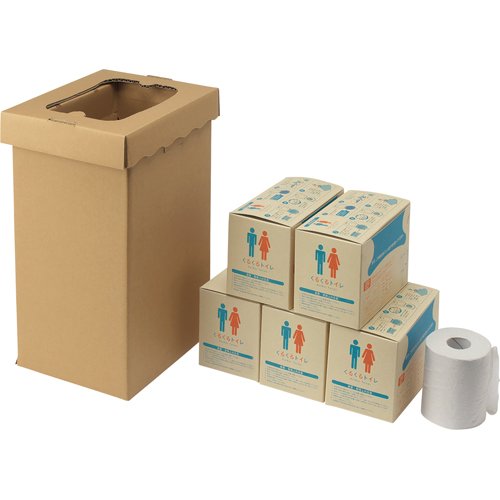 ダンボール製の便器がセットになっていて、組み立ててどこでも用を足すことができます。