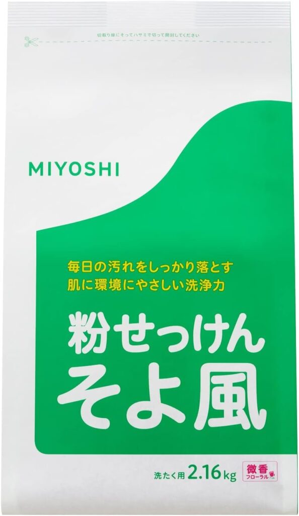MIYOSHIの〝そよ風〟など、大容量の粉石鹸も余裕を持って入れることができます。
