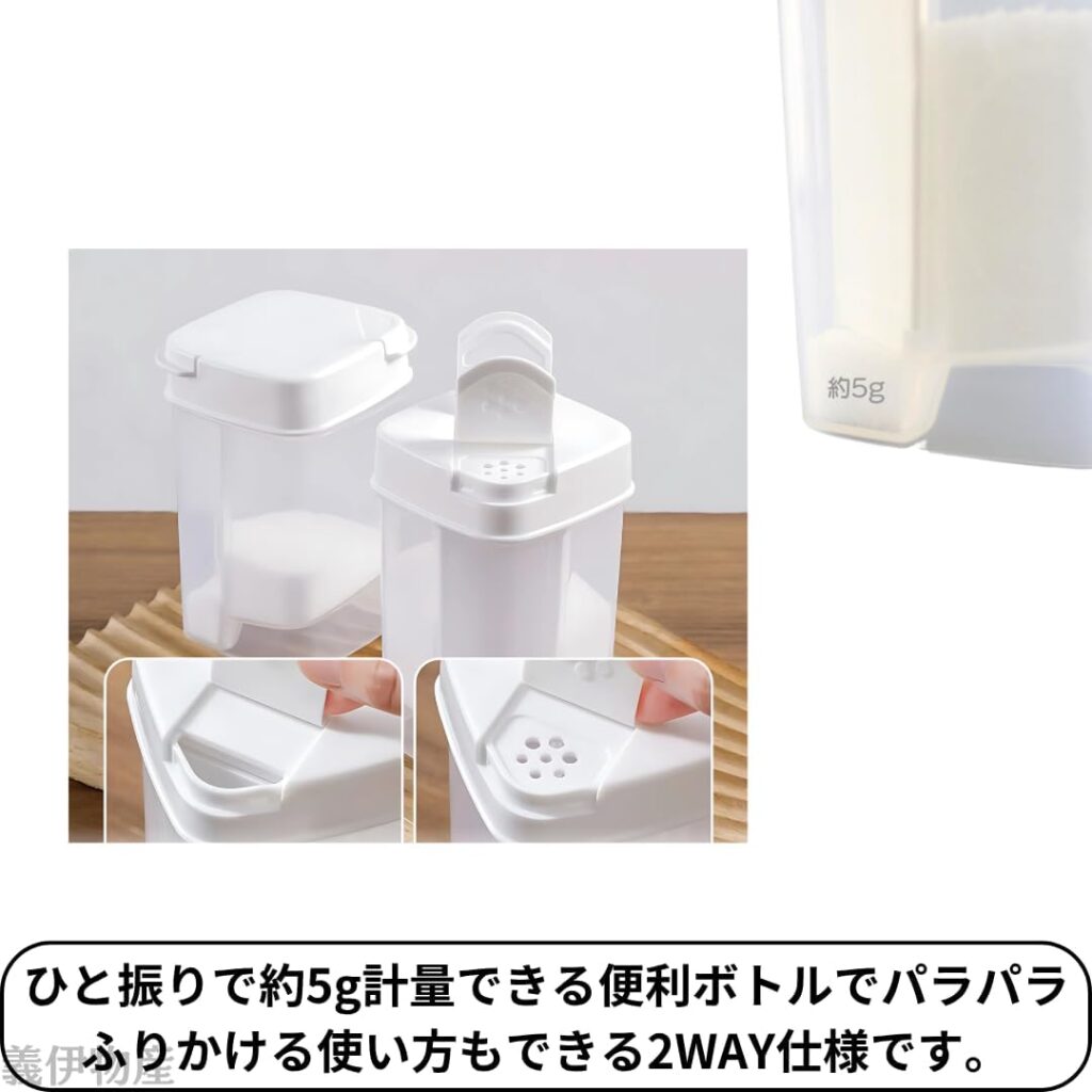 また、ひと振りで5gが出るため、計量の手間がかかりません。
