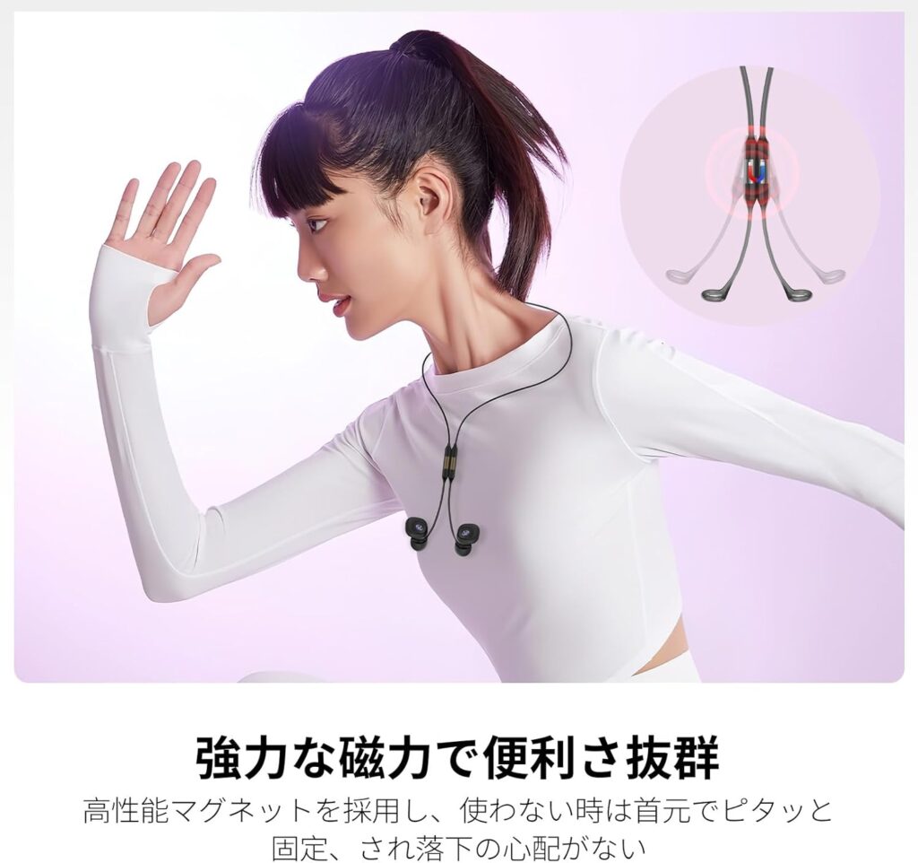 首から掛けることができるので、ワイヤレスイヤホンが耳から外れた場合でも地面に落下しにくいです。