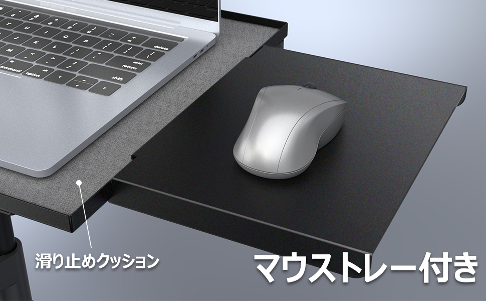さらに、滑り止めクッションやマウストレーが備わっていて、ノートパソコン台やサイドテーブルなどさまざまな用途に使用できます。