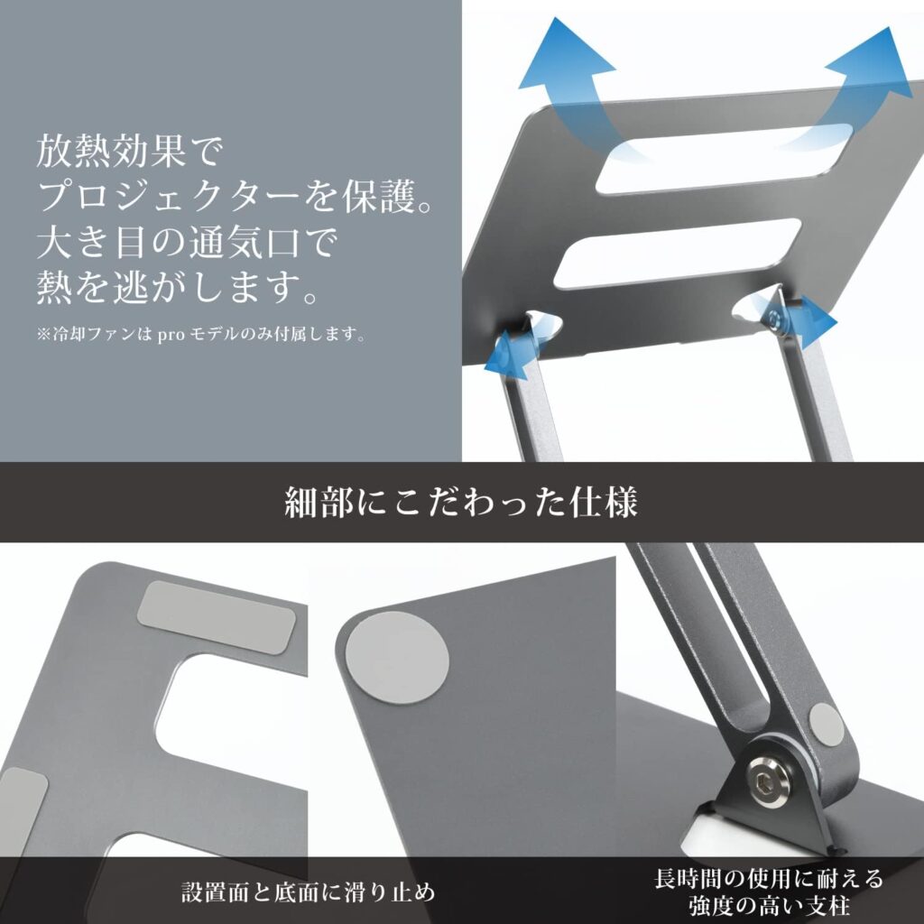 高さや角度の調整ができ、コンパクトに折りたたむことができ、なにより口コミ評価がとても高いので、「プロジェクター台」をさがしている方でとくべつこだわりのない場合は、こちらを選んでまず失敗はありません。