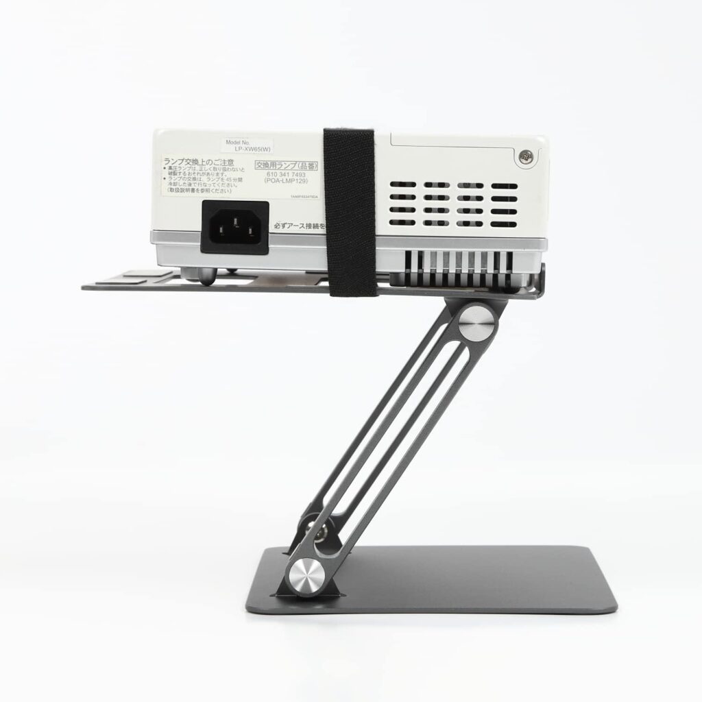 ゴムバンド付きのものや、高さの調整ができるもの、周辺機器もまとめて収納できるものなど、さまざまな「プロジェクター台」が展開されています。