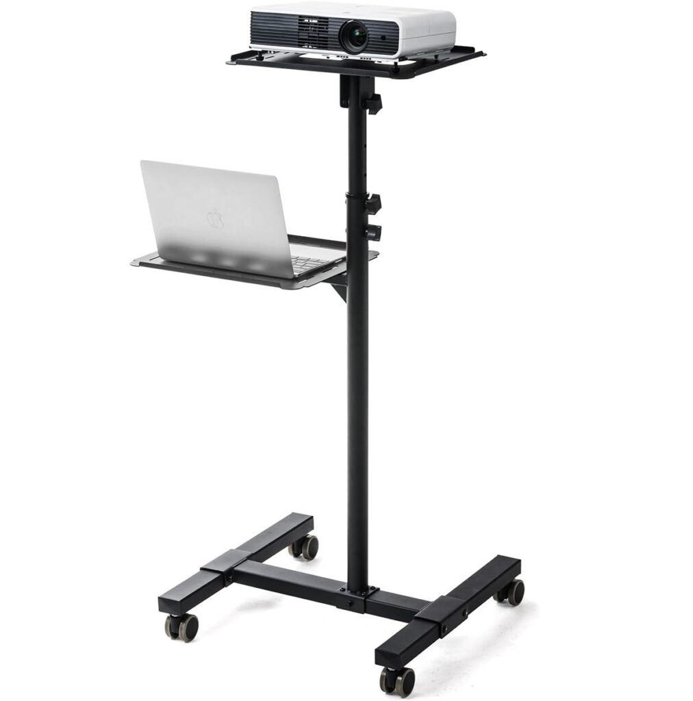 プロジェクターもノートPCも安定して設置でき、90度角度調整も便利。