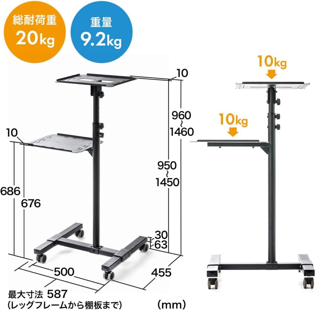 2.サンワダイレクト プロジェクター台 棚板付 キャスター付