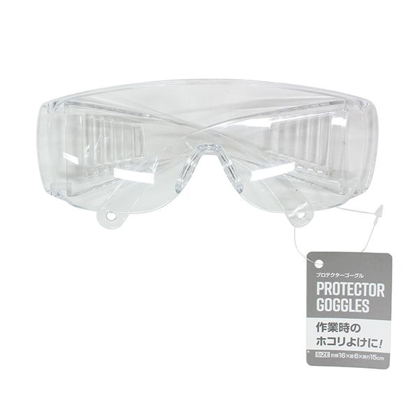 セリア(100均)では、『プロテクターゴーグル』という「保護メガネ」が販売されているという情報が見つかりました。