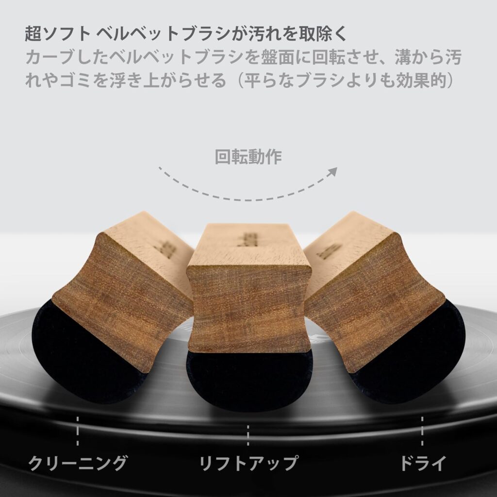 超ソフトなベルベットブラシで、レコード盤の汚れを優しく落としてくれます。