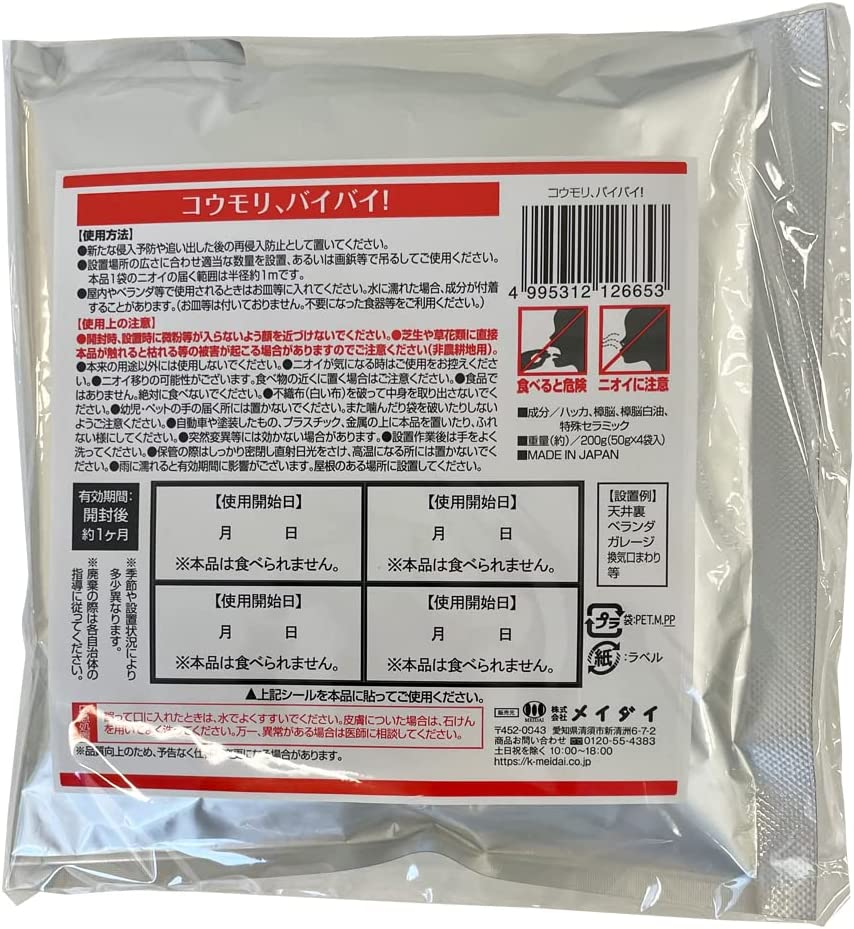 3.メイダイ コウモリ忌避剤 コウモリ、バイバイ! 50g×4袋入