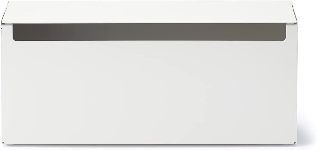 ただ、無印良品では『スチールタップ収納箱フラップ式』という製品が販売されていて、ルーター周りのごちゃごちゃとした配線を隠してスッキリとさせるのに最適です。
