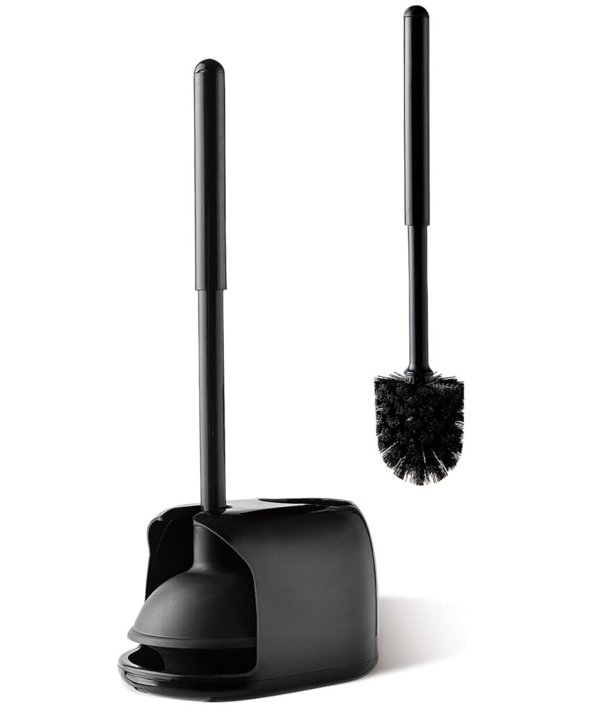 黒一色のシンプルなデザインで、ブラシとすっぽんがセットになっています。