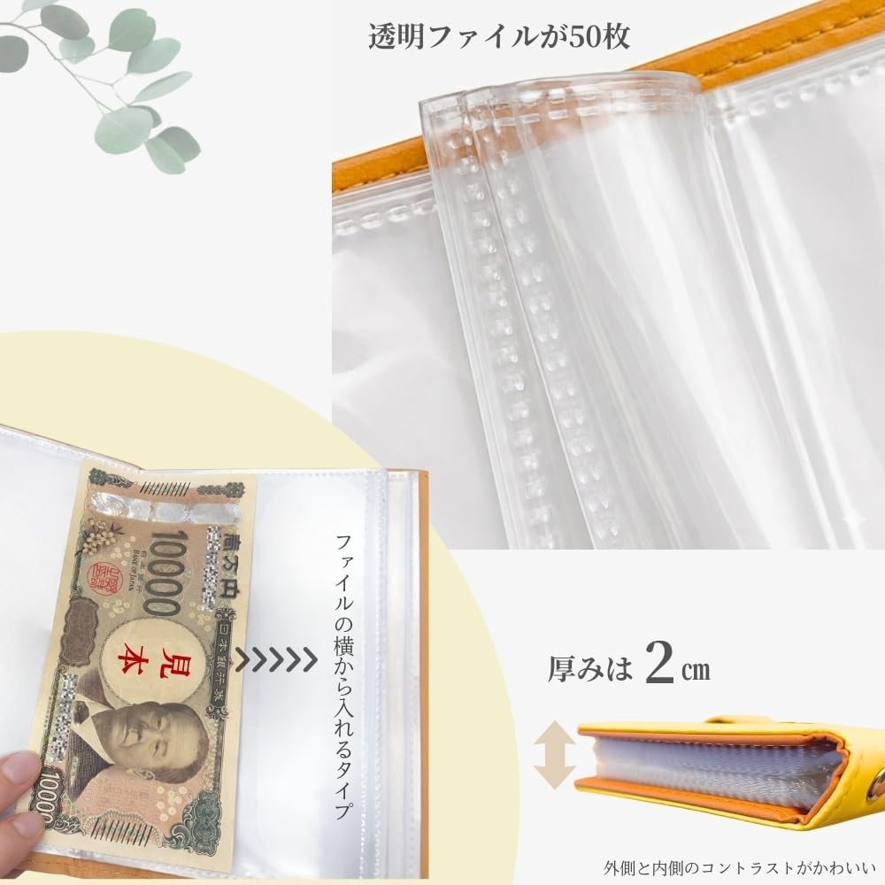 50ページ分のポケットが備わっていて、合計100枚のお札を収納できます。
