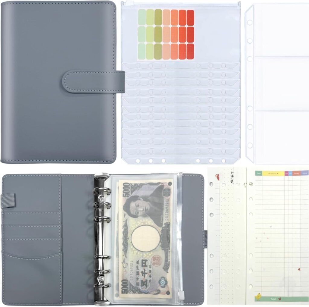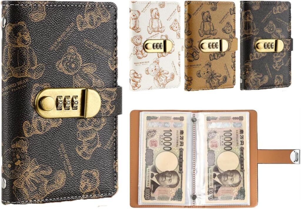 バインダータイプのものや、お札が100枚入るもの、持ち運びやすいものなど、さまざまな「貯金手帳」が販売されています。