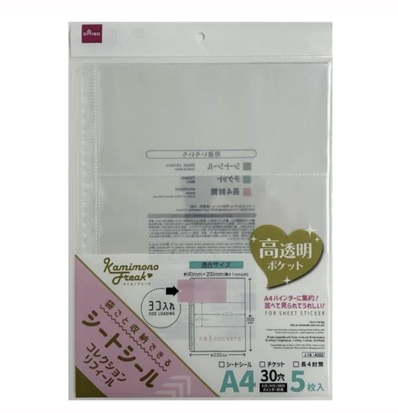 ダイソー(100均)では、『シートシールコレクション収納リフィール』が販売されています。