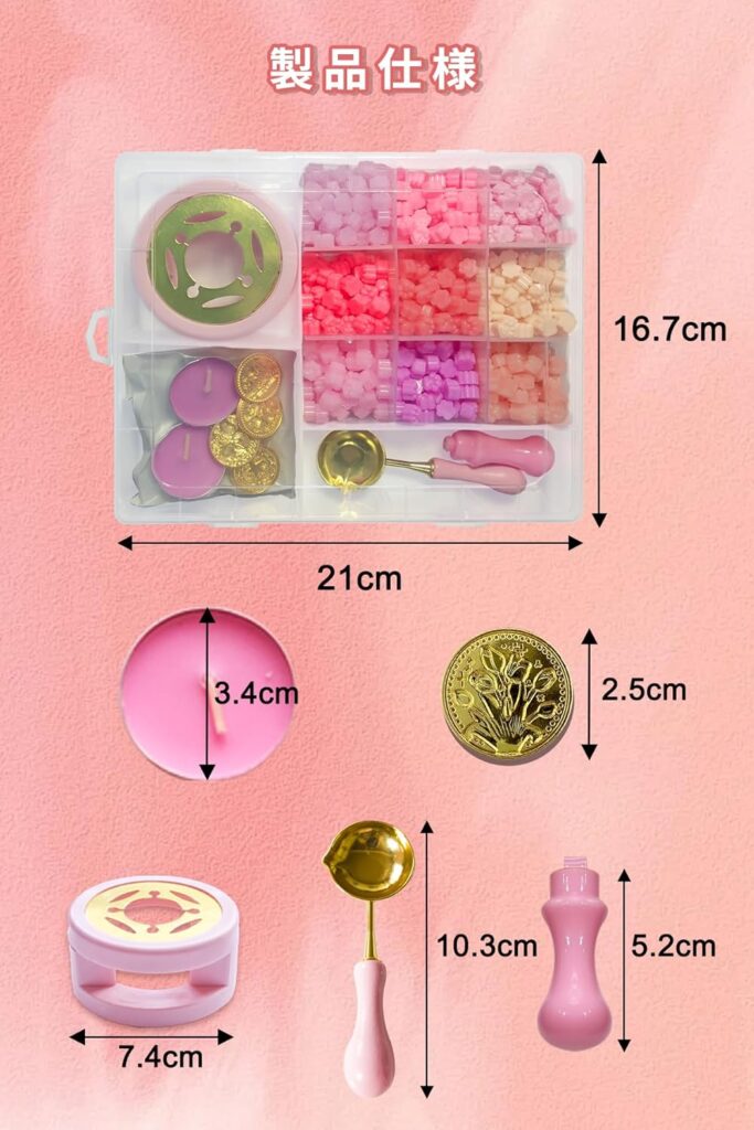 4種のスタンプやワックス炉など、下画像のアイテムがセットになっています。