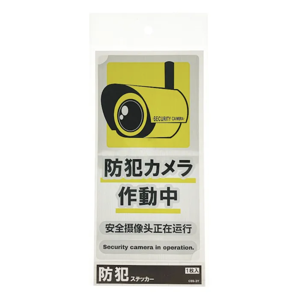 カインズ(ホームセンター)では、『防犯ステッカー縦4種』や『防犯カメラ作動中ステッカー』などが販売されています。