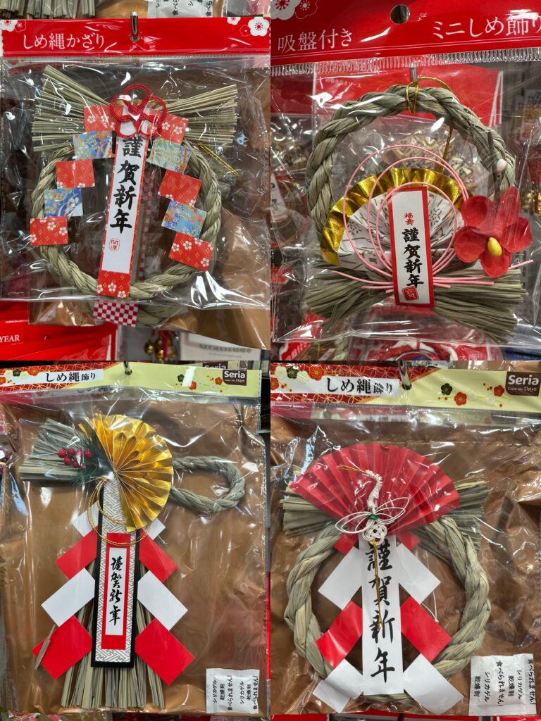 セリア(100均)では、さまざまな「玄関用のしめ縄」が販売されています