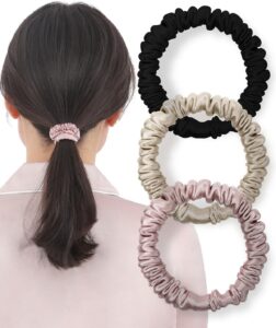 しっかり結べて緩みにくいものや、リボンがアクセントになるもの、細身で目立たず装着できるものなど、さまざまな「シルクのヘアゴム」が展開されています。