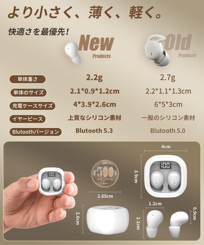 横向きに寝ても痛くならないし、小さめで耳から外れにくいのがいいです。
