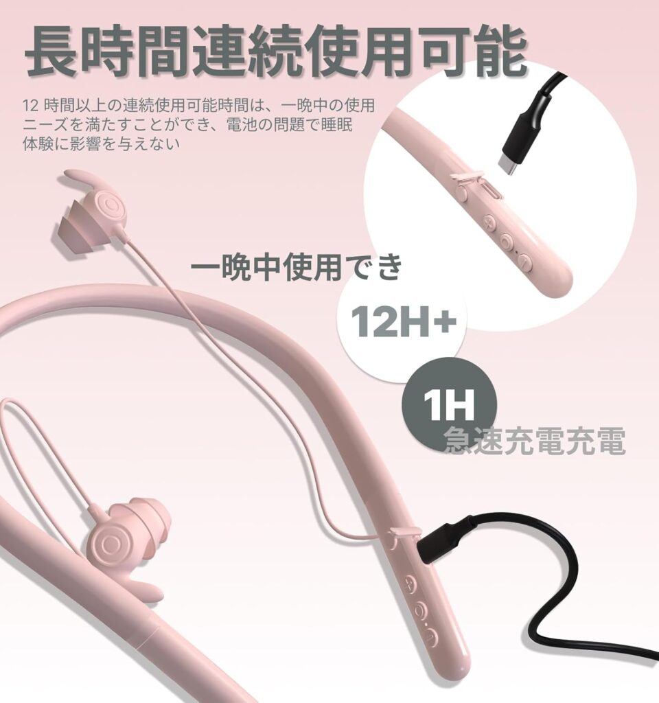 2.Hmusic 睡眠用イヤホン Bluetooth 5.4 ネクバンド型