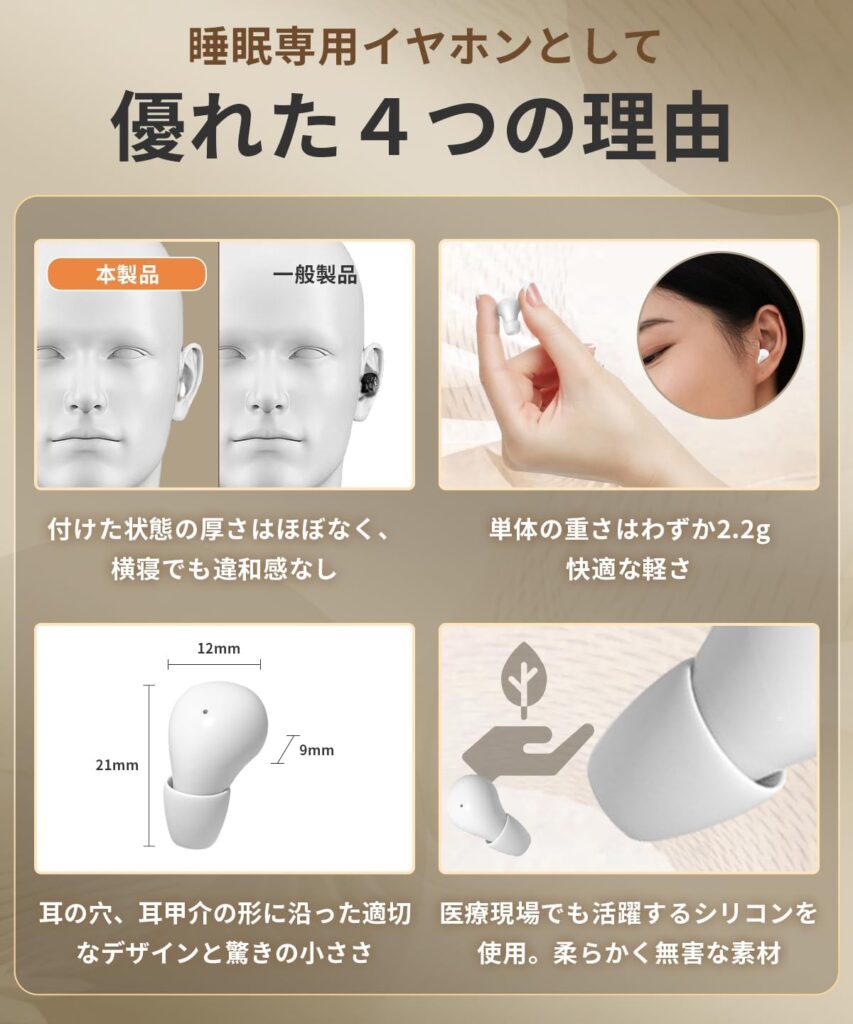睡眠時に使用しても、邪魔になりにくい「寝るとき用のイヤホン」。