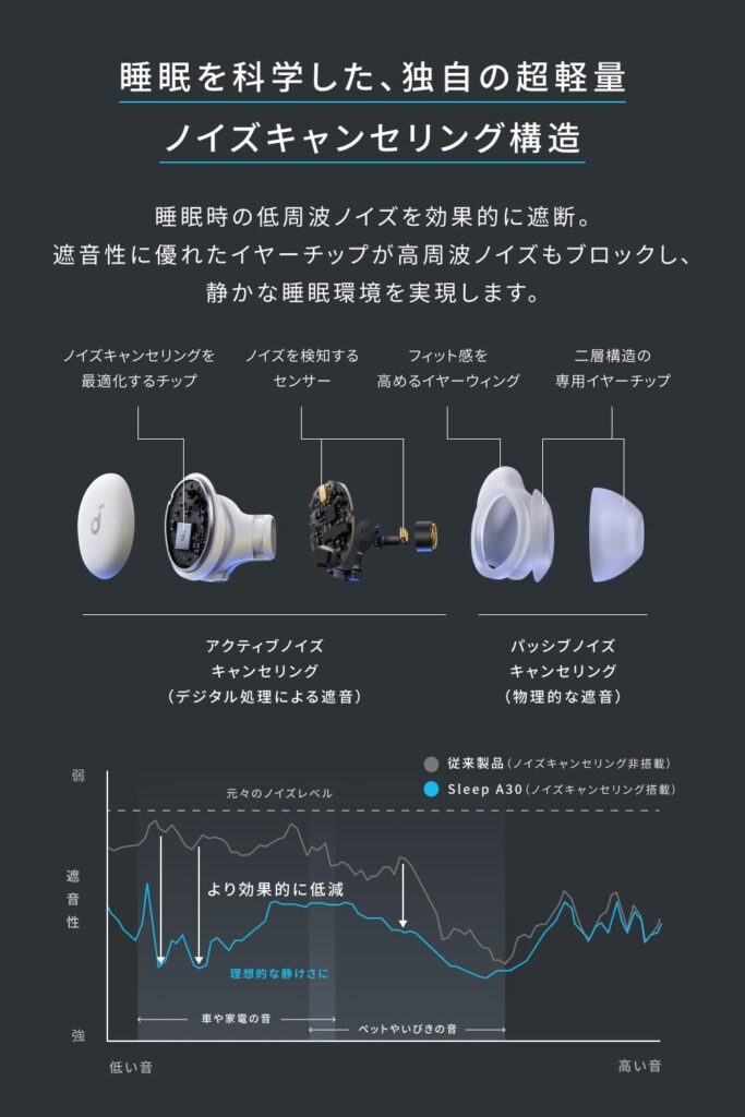 高性能なノイズキャンセリング機能が備わっていて、周囲のいびきや雑音を軽減してくれます。