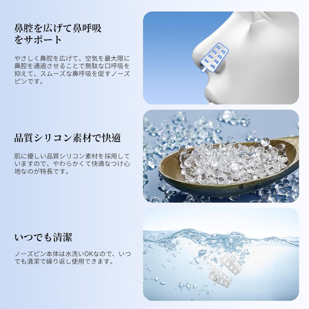 と、しっかりと鼻孔を開いてくれ、鼻いびきが軽減される点が好評です。
