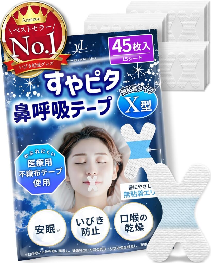 とくにamazonで人気が高く、〝鼻孔拡張テープ〟カテゴリでベストセラー1位に選出されています(2025年11月時点)。