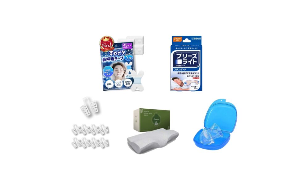 睡眠中のいびきを防止するための「いびき対策グッズ」。