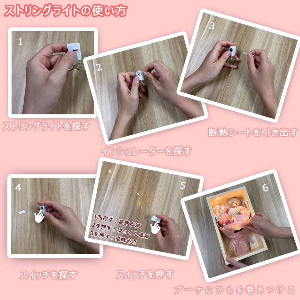 1.光る LEDライト付き ソープフラワー