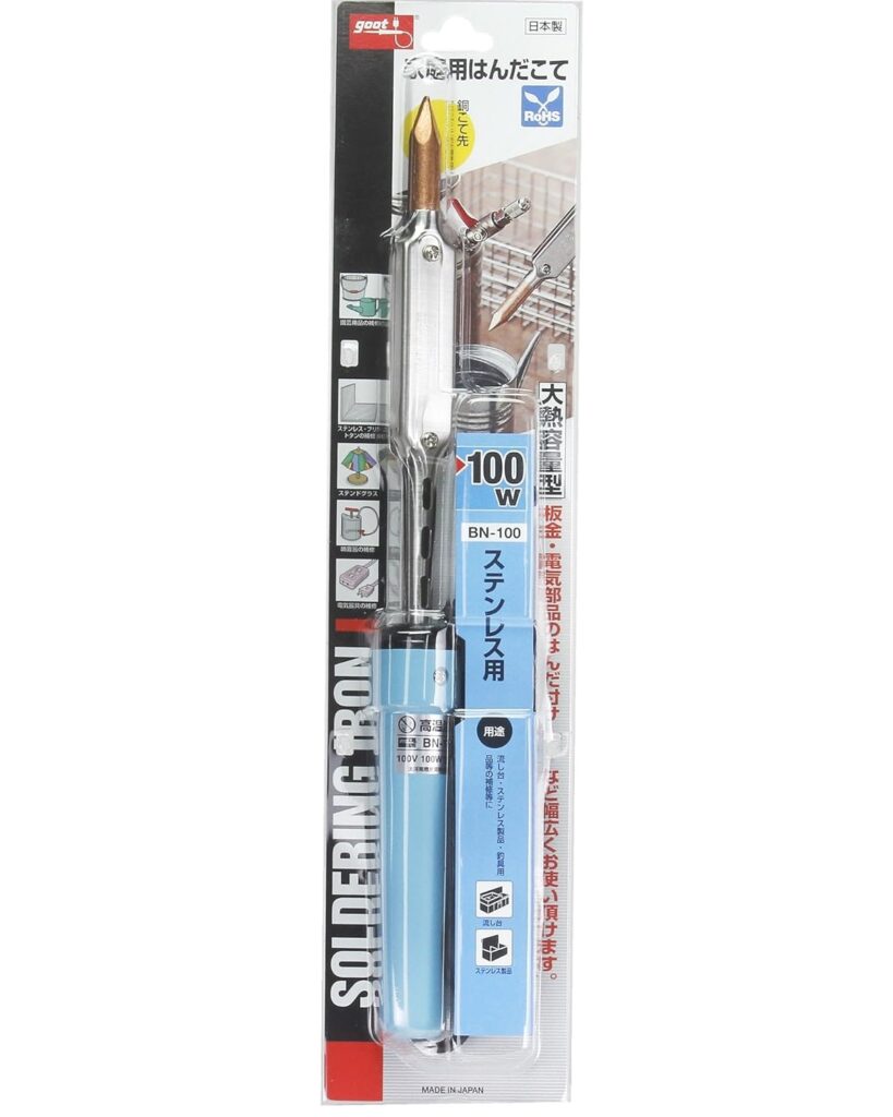 カインズ(ホームセンター)では、『goot(グット) 家庭用はんだこて 100W BN-100』や『宝商 コテライザーオートミニ』、ドンキホーテでも販売されている『白光 はんだこてBLUE SET』などの「はんだごて」が販売されています。