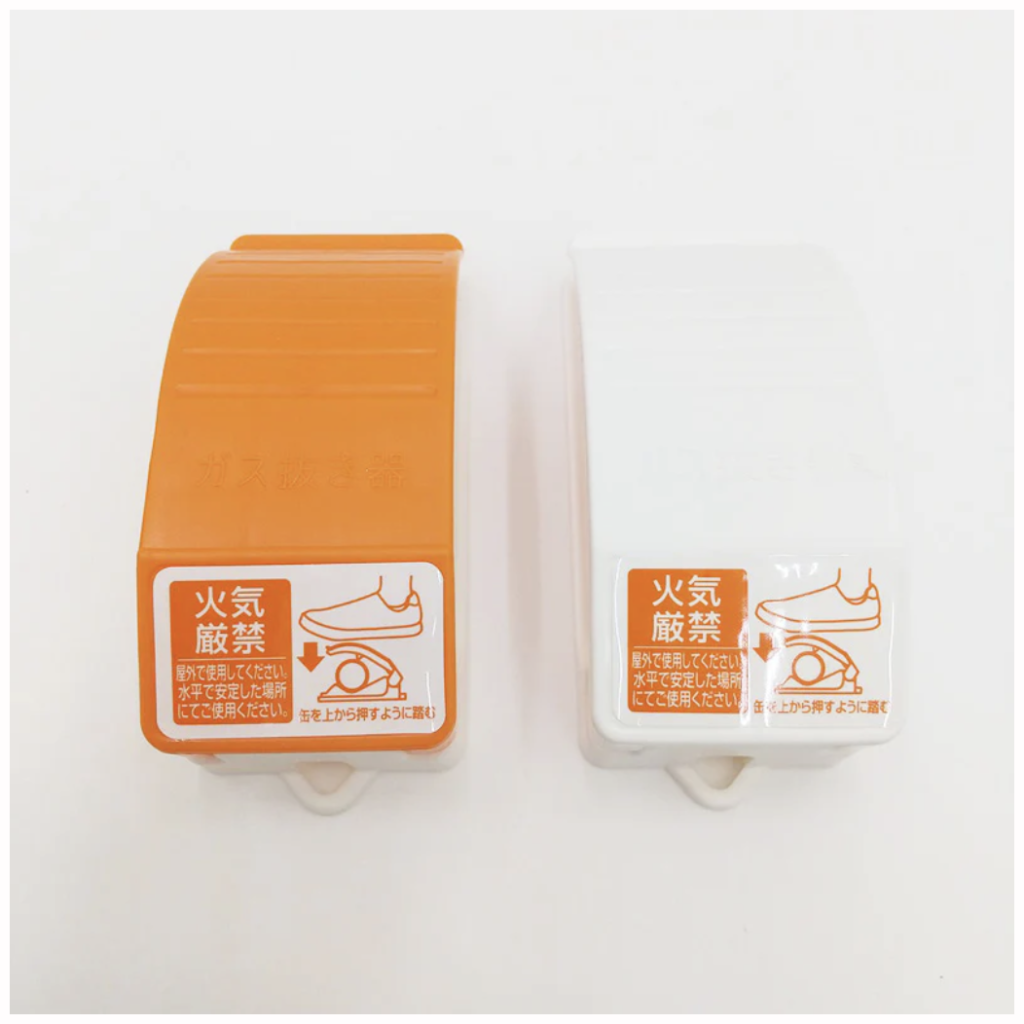 ダイソー(100均)では、『ガス抜き器 引っ掛けタイプ』や『ガス抜き器 足ふみタイプ』などの「スプレー缶の穴あけ機」が販売されています。