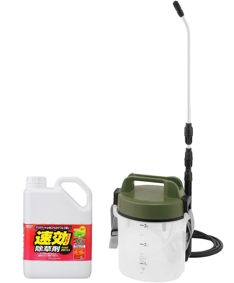 amazonでの販売では、2Lの除草剤も付属されているので、届いてすぐに使用できます。