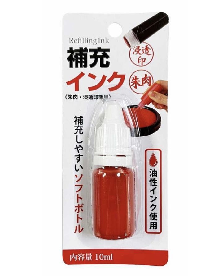 ダイソー(100均)では『朱肉インク』という「シャチハタ補充インク」が販売されています。