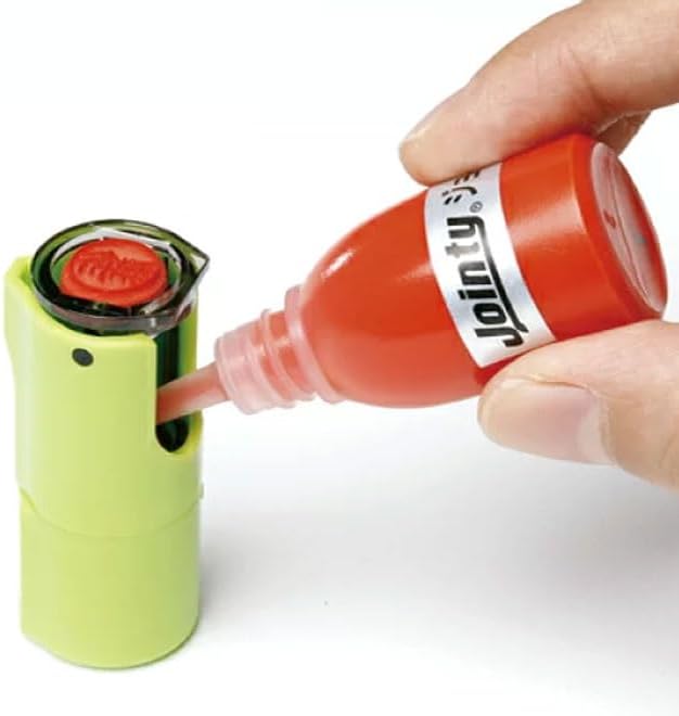 ノズルが細くつくられているので、キャップレスの回転式ネーム印にも注入しやすいです。