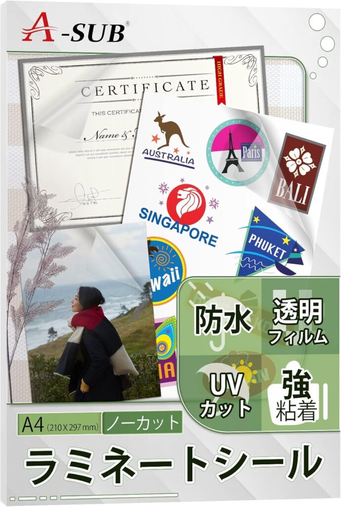 透明度の高いラミネートフィルムで、ステッカーの上に貼るだけと使い方が簡単です。