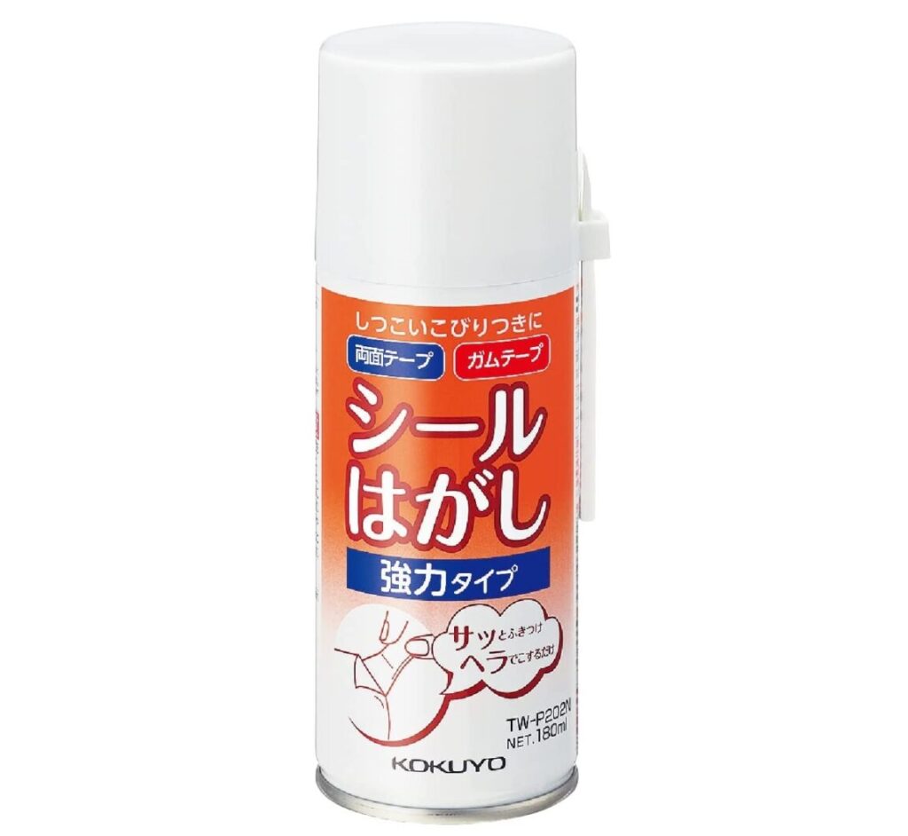 スプレータイプのものが一般的で、シールや糊残りに吹きかけることで綺麗に落とすことができます。