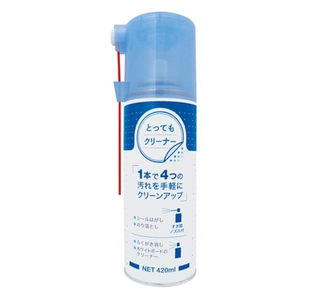 とくに「シール剥がし」として優れていて、細いノズルが付いているので隙間や手が届きにくい箇所に効率よく噴射できます。