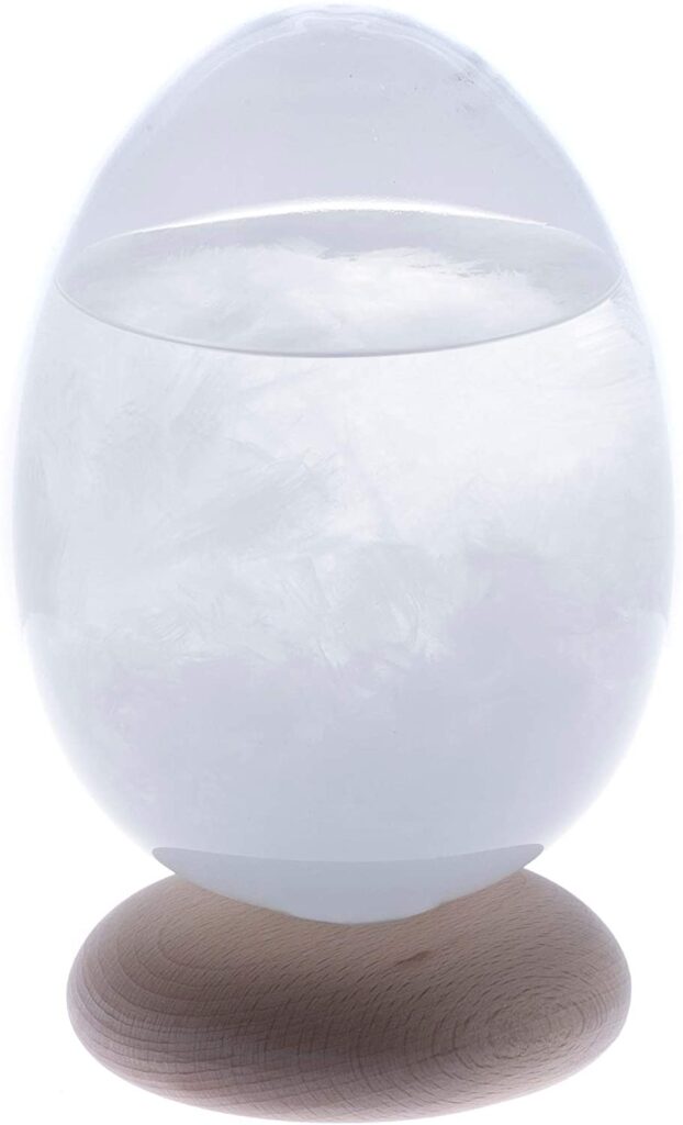 天候によって結晶の様子が変化するオブジェ「ストームグラス」。