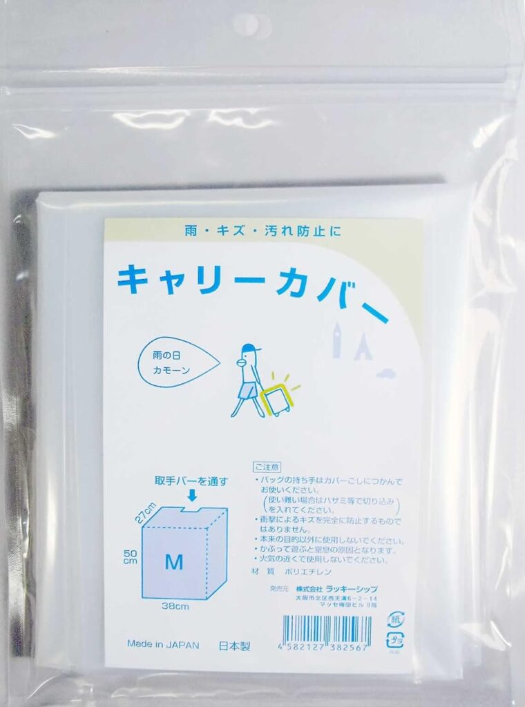 セリア(100均)では、『使い捨てレインバッグカバー キャリーバッグ用』が販売されているという情報が見つかりました。