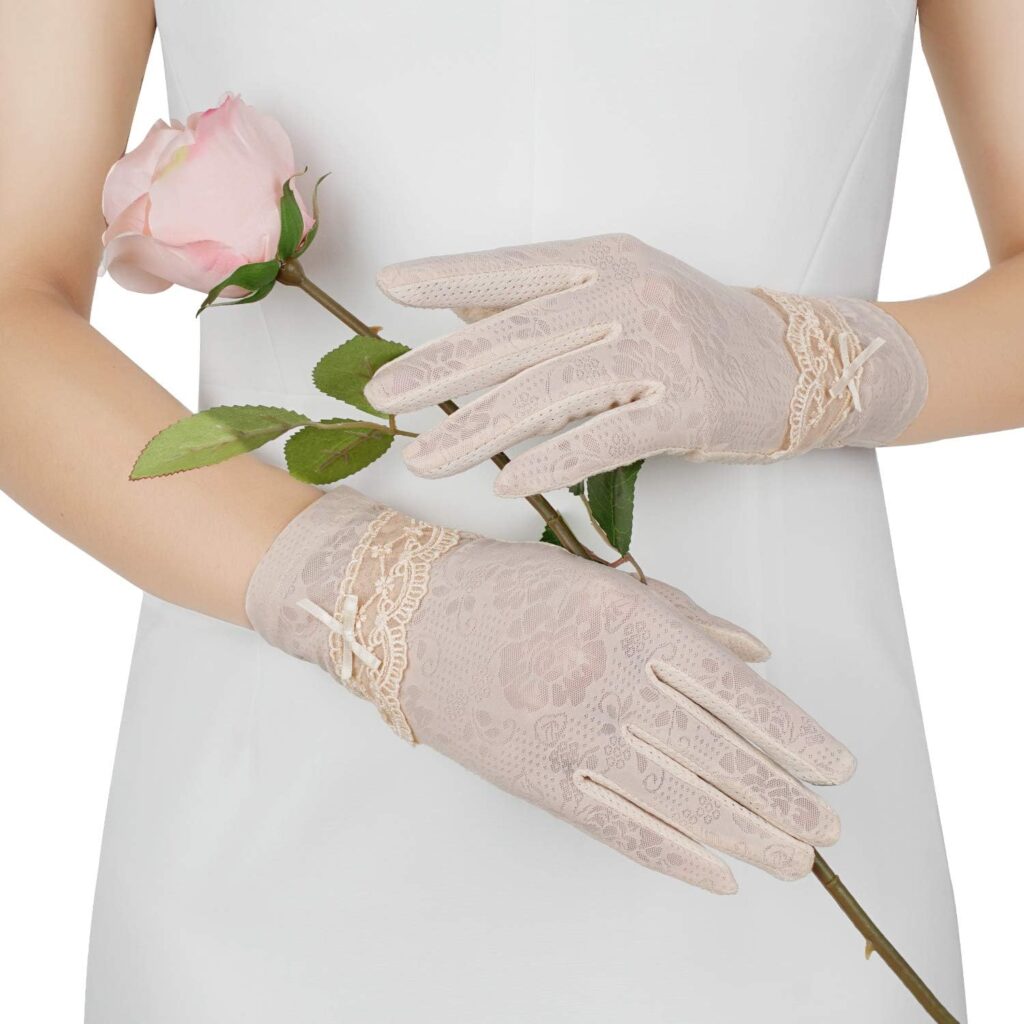 4.Euyqs エレガントな日焼け止め 夏のレースの手袋