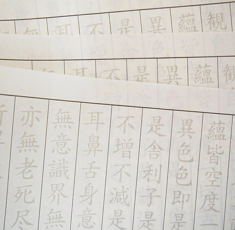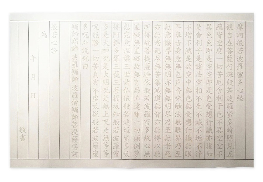 全ての用紙に般若心経の文字が薄く印刷されているため、上からなぞって書くことができます