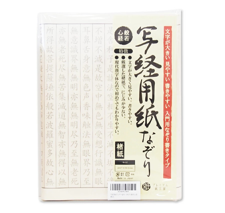 墨がにじまないように紙の質が工夫されており、なぞり書きができる点も相まって、使いやすい写経紙です。