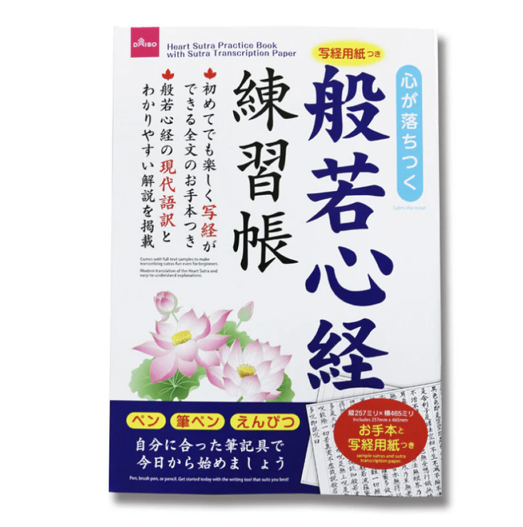 ダイソー(100均)では、「写経用紙」が付属された『写経用紙つき般若心経練習帳』が販売されています。